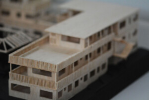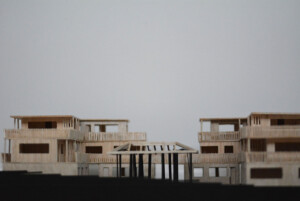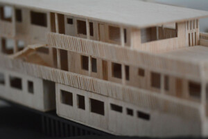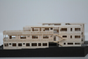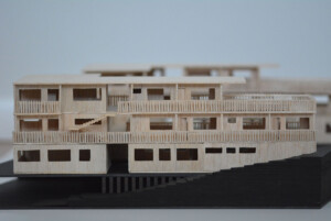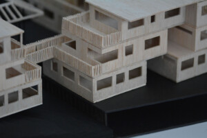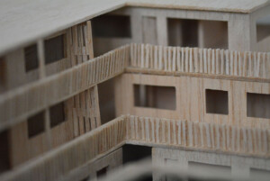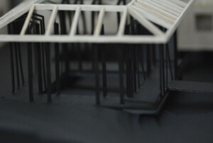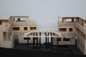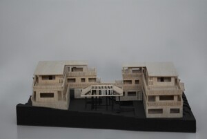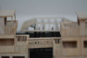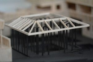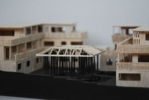 Model created for Design 4 group project, “The Return.” Outer perimeter housings made from balsa, hand cut and assembled to emphasise traditional methods and textures, while the central pavilion legs are black card cut with laser cutter to challenge the fragility of a material.